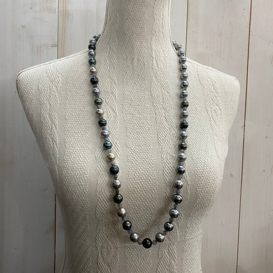 72.5 cm necklace in onyx, selenite, jade and aquamarine