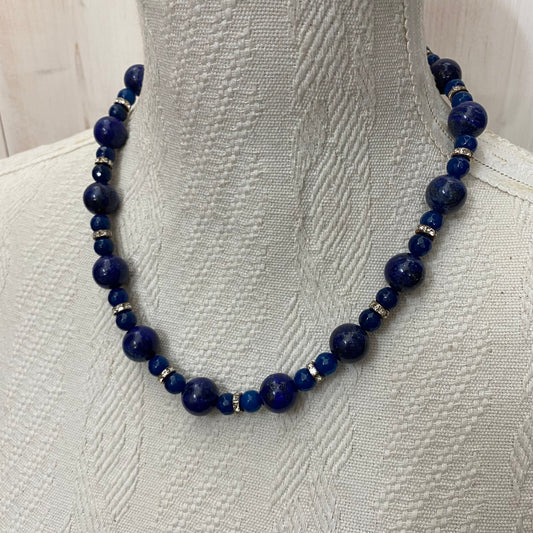 53cm necklace in silver, agate, zircons and lapis lazuli